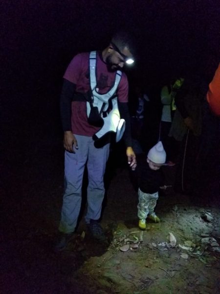 Outro grande desafio para a família foi por conta de a subida ser feita durante a noite. A umidade da mata faz com que a trilha fique mais escorregadia durante a madrugada e por isso os pais de Ravi tiveram que tomar bastante cuidado para não escorregar e também contaram com a ajuda dos guias. “Fomos muitos cuidados, principalmente por conta das baixas temperaturas. Nos agasalhamos bem, levamos os equipamentos necessários pra não sofrermos com o frio noturno causados pela mata e altitude da trilha”, explica.