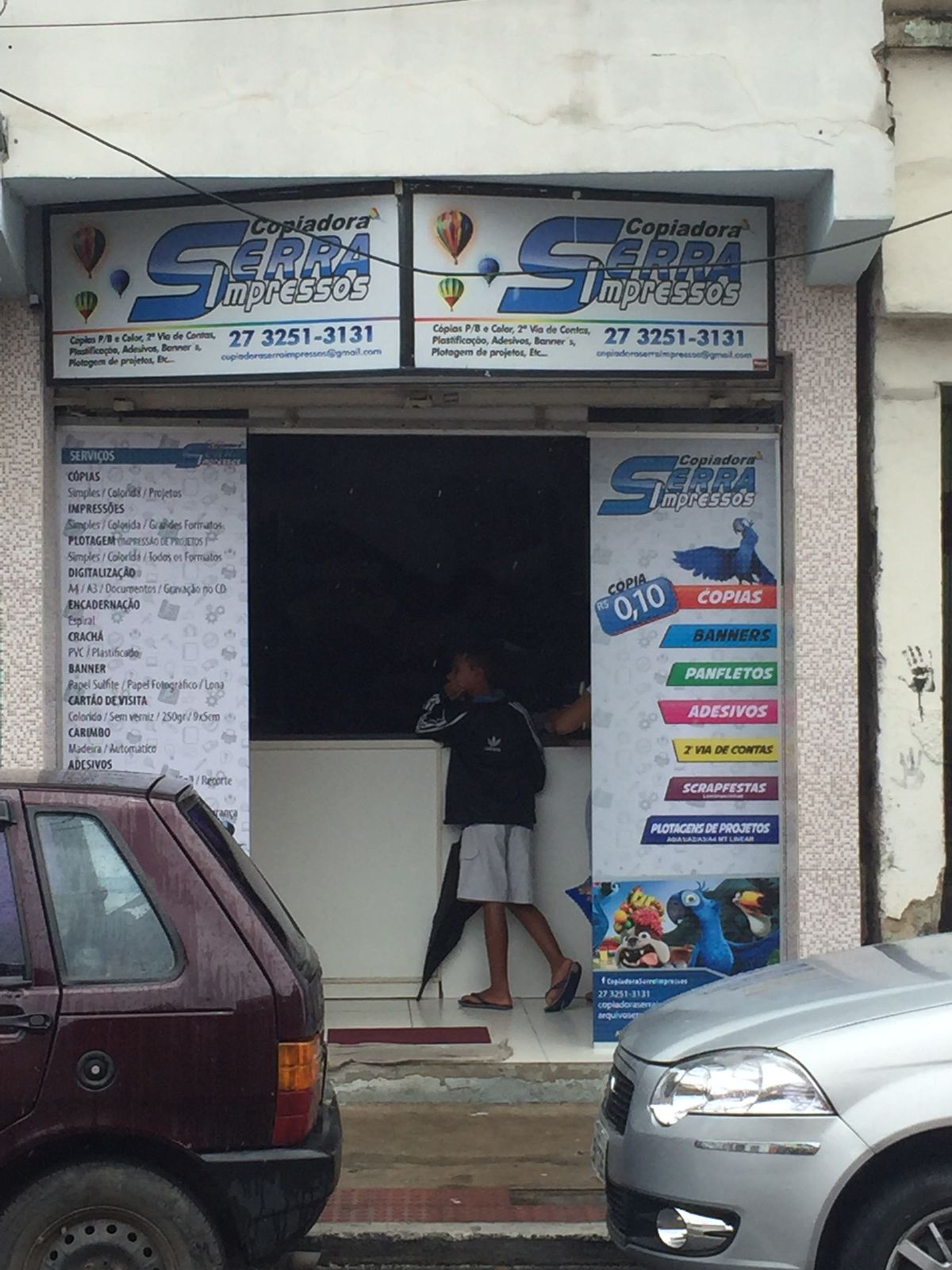 A Serra Impressos fica na Rua Major Pissarra, 240, Centro, Serra, em frente a Câmara de Vereadores da Serra. O contato é o 27 99775-0273 por meio do WhatsApp.