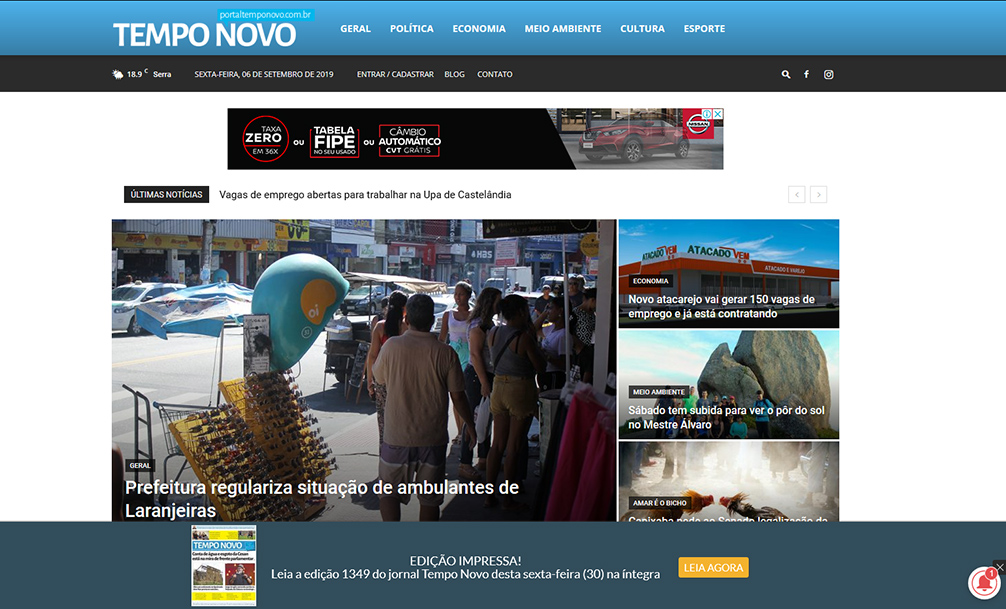 Proporcionalmente, já que estávamos nos referindo a um único município, esses números significam que o Portal Tempo Novo é um dos ambientes virtuais voltados a notícias mais lidos do Espírito Santo, haja vista que não temos a pretensão – a princípio -, de cobrir outras cidades capixabas. Por isso, foi necessário aprimorar e ampliar nossa capacidade de produção e transmissão de informação na web.