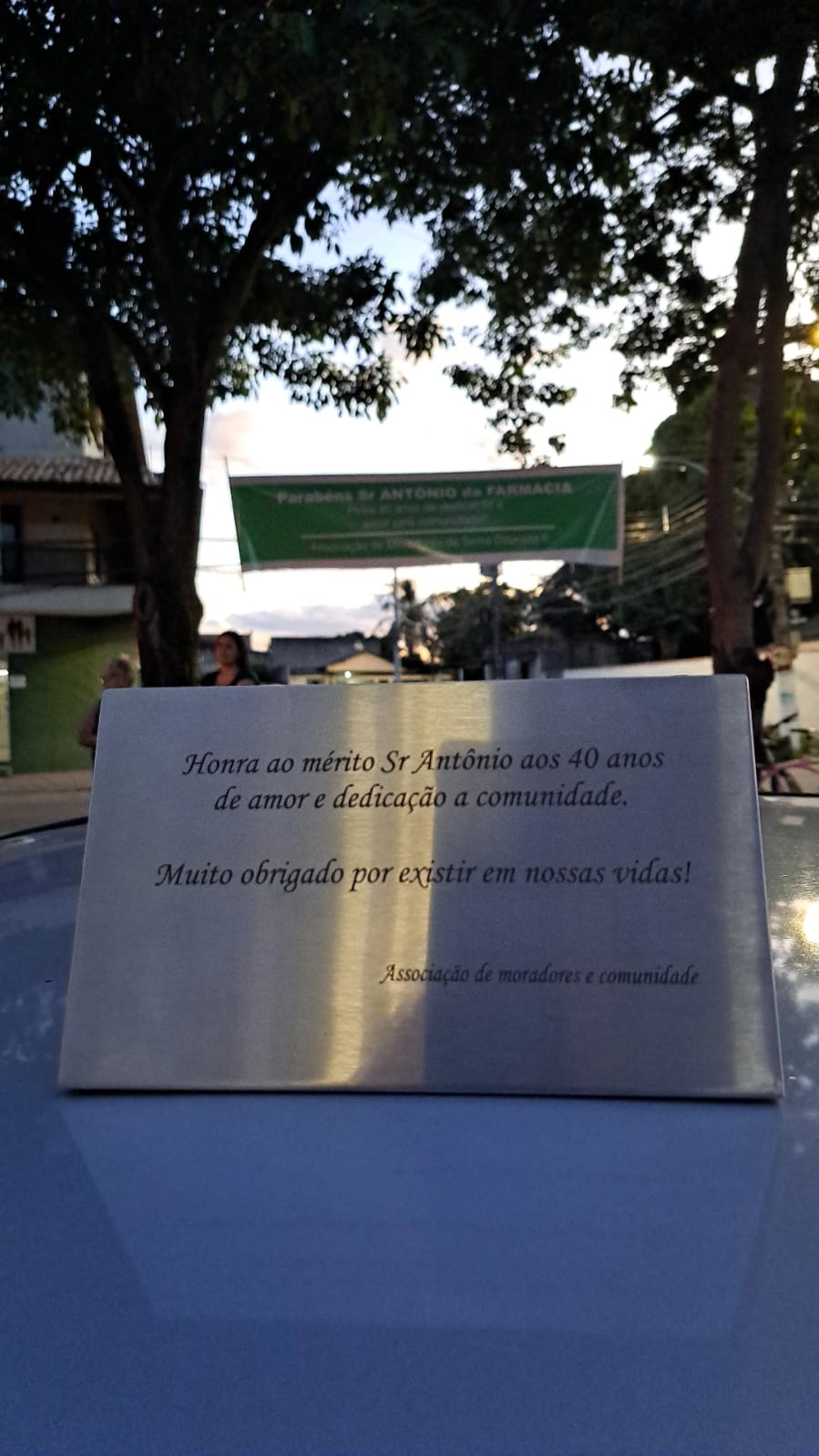 Esse sentimento de gratidão e carinho é tão grande que no dia do aniversário da farmácia de Antônio, que ocorreu no sábado da última semana (25), os moradores organizaram um dia de homenagens e surpresas com refeições, tele mensagem, abraços e até a instalação de uma placa de honra ao mérito por dedicação a comunidade.