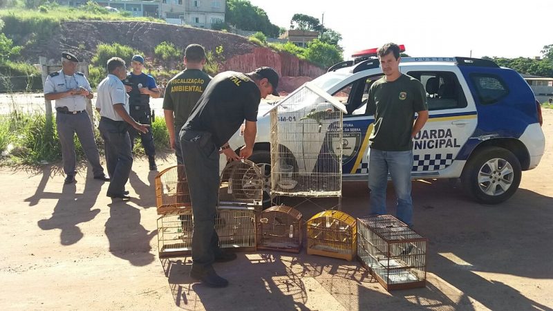 Dez pássaros apreendidos, além de uma construção irregular destruída. Este foi o saldo de uma ação integrada da Guarda Ambiental da Serra com fiscais de meio ambiente. Os agentes buscavam pontos viciados de descarte irregular de resíduos, mas acabaram por efetuar a apreensão dos animais. A ocorrência foi no Bairro das Laranjeiras, região de Jacaraípe. A ação aconteceu nesta terça-feira (27).