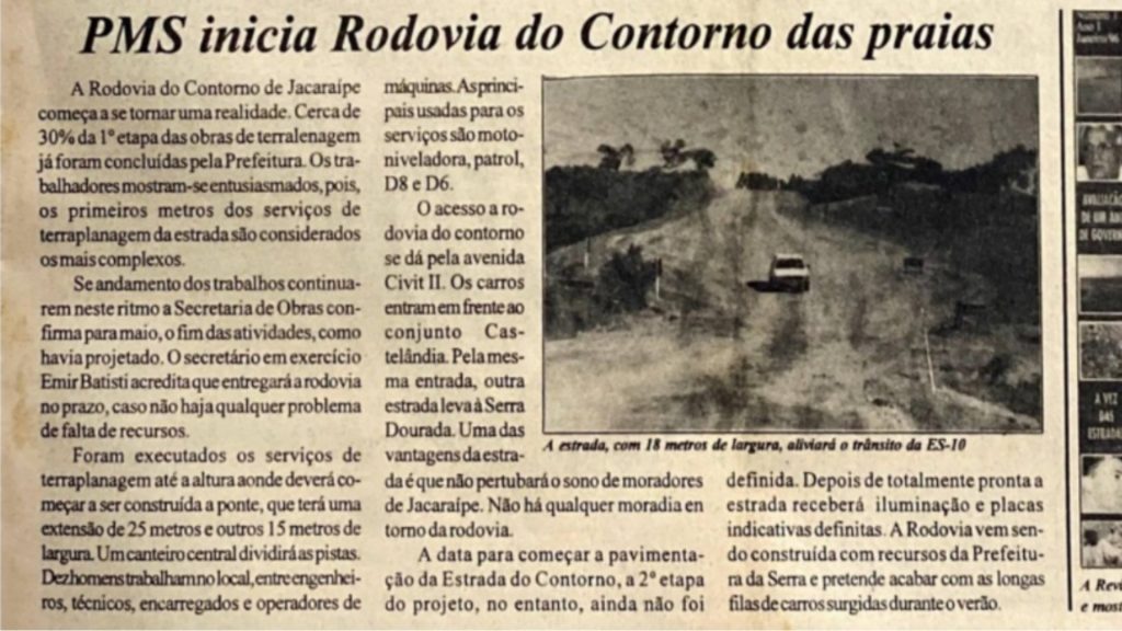 Ainda no segundo mandato de Motta, o Contorno de Jacaraípe começou a sair do papel — da forma que era possível diante de um cenário nacional marcado por instabilidade, hiperinflação e fortes incertezas federativas. Motta reunia diversos predicados, entre eles a habilidade de articular recursos junto ao governo federal. Foi assim que conseguiu viabilizar o início da obra, com aportes vindos de Brasília.