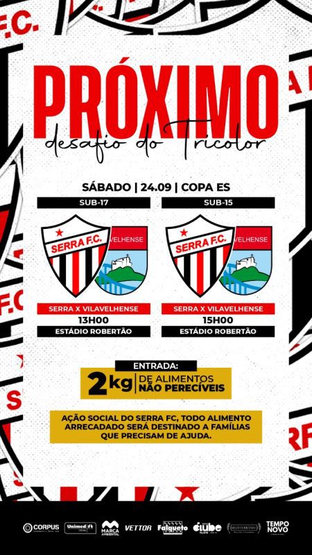 Seguindo esta tradição, neste sábado (24), o estádio Robertão, a casa do tricolor serrano, será palco de duas partidas pela Copa ES Sub 15 e 17 contra o time do Vilavelhense.