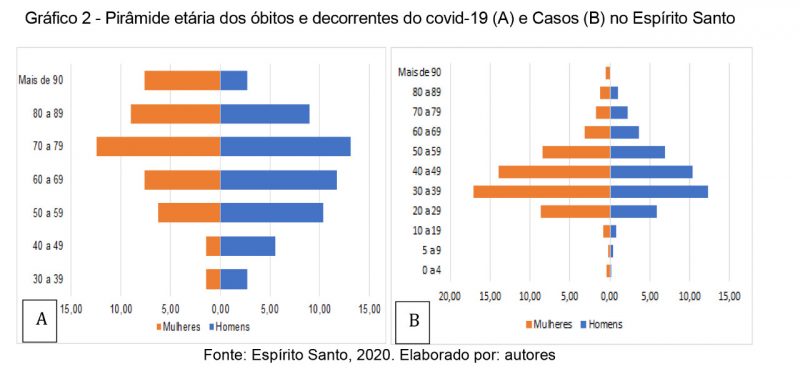 A maior parte das pessoas que contraíram a covid-19 no ES tem entre 20 e 59 anos, ou seja são jovens e adultos. Mas a maioria das mortes é de idosos. É o que aponta estudo realizado pela Ufes publicado em junho pela Revista Brasileira de Geografia Médica e da Saúde.