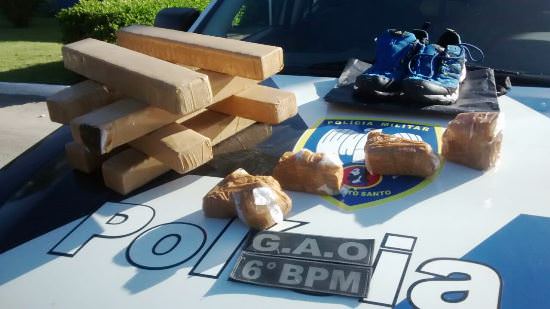 Os policiais patrulhavam o local quando avistaram um homem descendo uma escadaria com uma sacola preta nas mãos. O suspeito, ao notar a presença da polícia, fugiu abandonando a sacola. Durante as buscas na escadaria, os militares encontraram quatro pedaços de crack e oito tabletes de maconha. O suspeito não foi localizado.