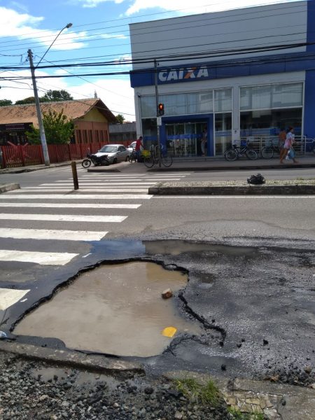 O buraco em questão, fica em frente a Caixa Econômica Federal, mas o problema não acontece somente neste trecho, se estende por toda a Abdo Saad que também é um trecho da rodovia ES 010, de responsabilidade do Governo do Estado.