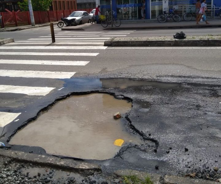 Um internauta do Tempo Novo enviou através do nosso WhatsApp uma foto mostrando uma cratera que se abriu na avenida Abido Saad, em Jacaraípe. De acordo com o morador, Thiago Carneiro, o buraco se abriu há algumas semanas.
