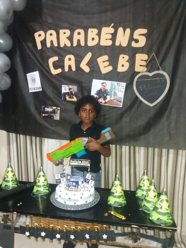 Com o sonho de se tornar um delegado de Polícia Civil e lutar contra a criminalidade em seu país, uma criança capixaba tem se inspirado diariamente nas ações do titular da Delegacia de Homicídios e Proteção à Pessoa (DHPP), Rodrigo Sandi Mori. O menino de apenas dez anos chegou a escolher o delegado como tema da sua festa de aniversário.