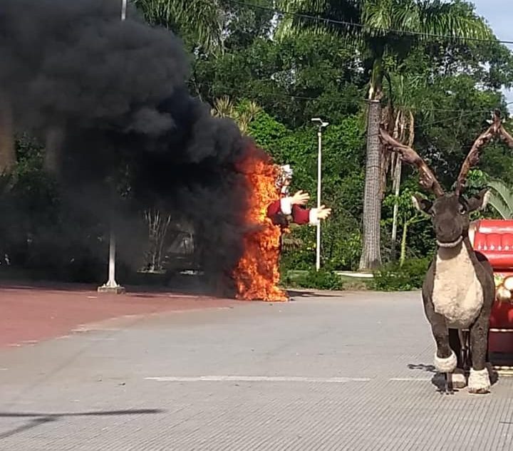 Um ato de vandalismo chamou atenção de quem passava pelo Parque da Cidade na manhã desta terça-feira (10). Trata-se de um Papai Noel de plástico que faz parte da decoração de Natal do espaço e foi queimado por três crianças.