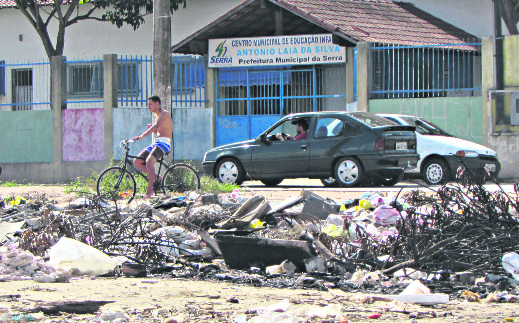 O depósito clandestino de lixo fica em frente ao Cmei Antônio Laia.