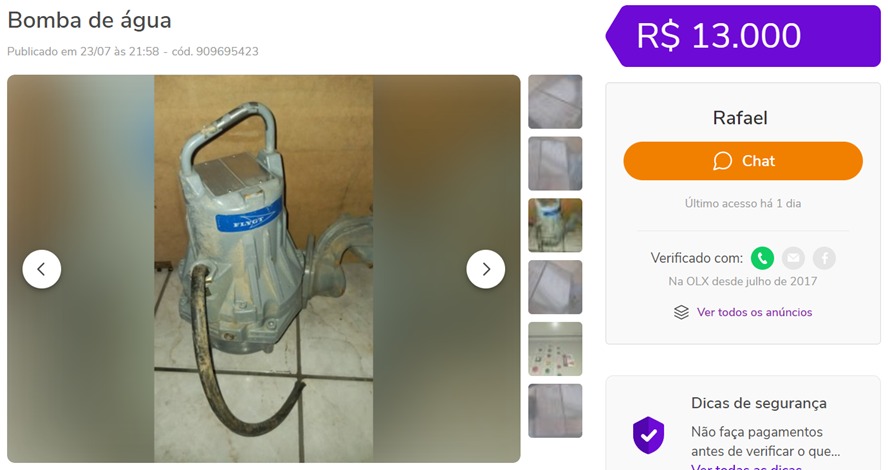 De acordo com o supervisor eletromecânico Mário César Alves Geraldo, o desfecho da história foi positivo. “Após alguns dias do furto, foi encontrado um anúncio na OLX com a bomba e o painel da elevatória. A polícia e o jurídico da empresa tomaram as medidas cabíveis e recuperaram os itens. A pessoa que estava com os equipamentos foi presa”, contou o profissional.