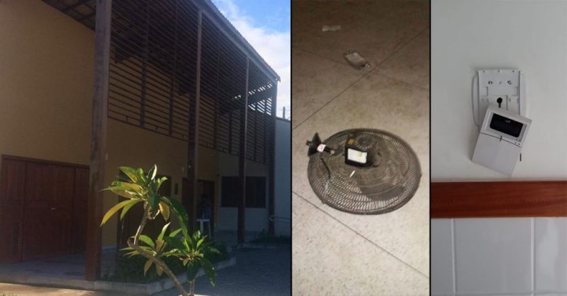 “Essa noite o Centro de Vivência foi vítima de ladrões. Quebraram as janelas, destruíram o alarme, desligaram a energia e até os fios foram roubados. Além disso, quebraram os aparelhos de ginástica e tentaram roubar os ventiladores, mas não conseguiram. Fizeram uma bagunça”, afirma Victor.