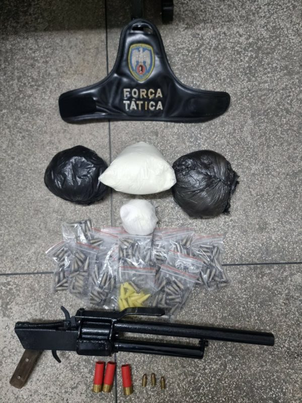 No sábado (18), militares da Força Tática visualizaram alguns suspeitos em fuga no bairro Balneário de Carapebus. Eles não foram localizados, mas após buscas foram apreendidos cinco pinos de cocaína e um revólver calibre 38 com seis munições.