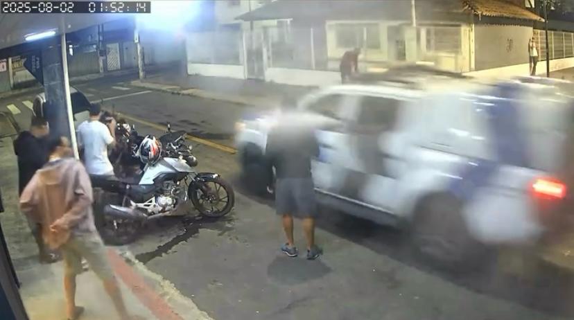 No último sábado (2), câmeras de segurança flagraram um policial militar utilizando spray de pimenta contra frequentadores de uma bar no bairro José de Anchieta, na Serra. No vídeo, é possível ver o momento em que uma viatura da PM se aproxima do estabelecimento e, antes mesmo de parar, um dos militares com o braço esticado utiliza o equipamento contra o grupo que estava no local.