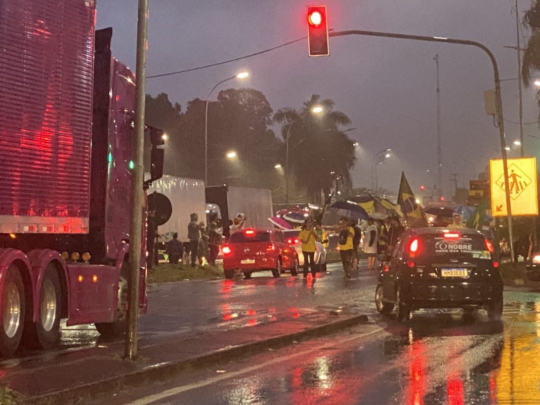 Por volta das 18 horas, uma viatura da Polícia Rodoviária Federal (PRF) estava no local acompanhando a manifestação golpista.