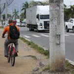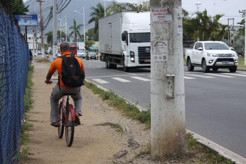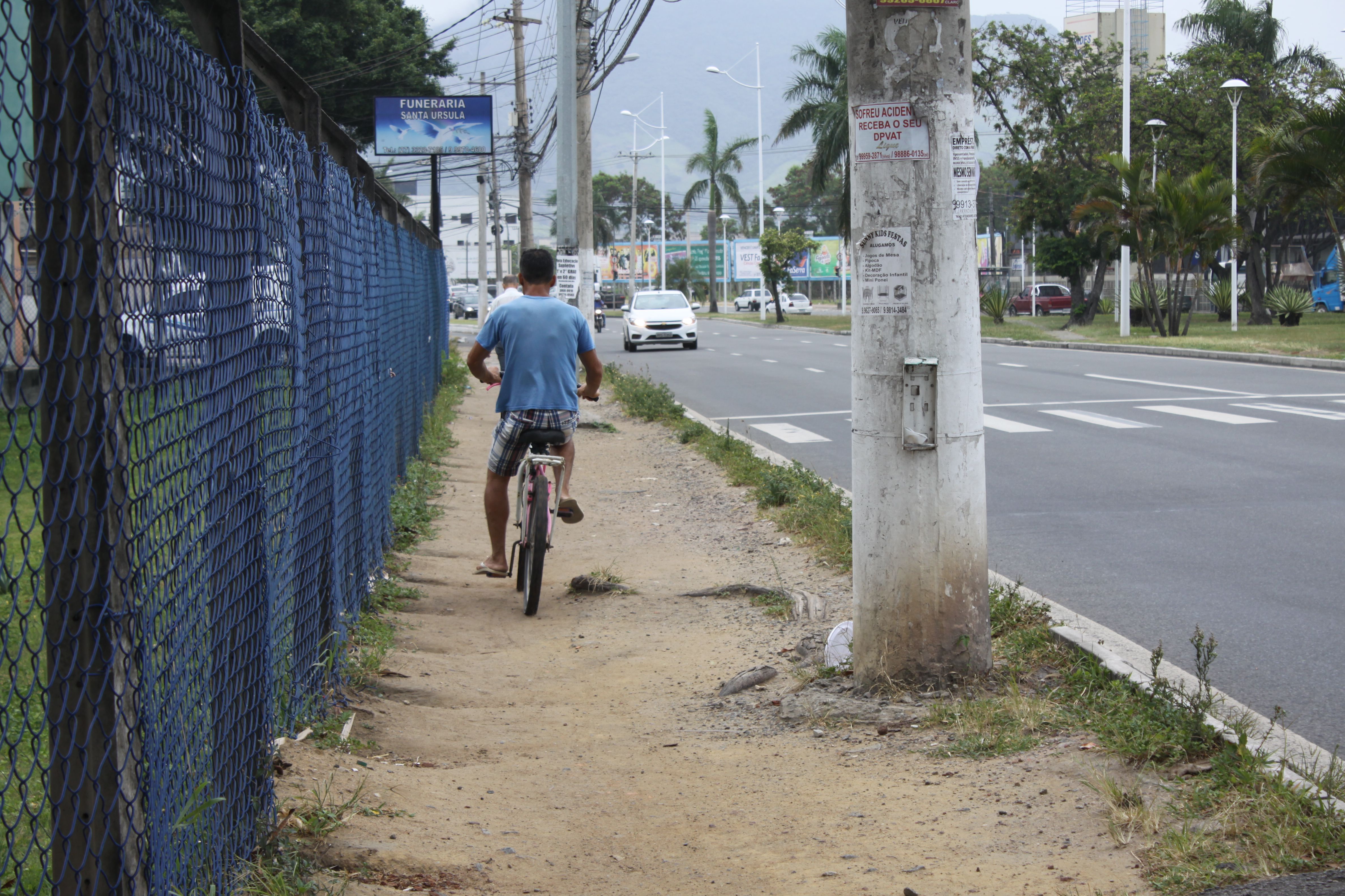 Ciclistas também sofrem risco de acidentes. Tânia Mônica tem medo de passar pelo local de bicicleta. “Faço tudo de bicicleta e são muitos obstáculos, passo neste pedaço orando, porque é muito perigoso, o fluxo de veículos, tem raízes de árvore, tem tudo”, reclama.