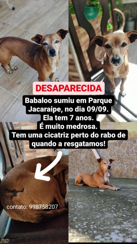 Já quem avistar a Babaloo deve entrar em contato com o telefone 27 99875-8207.