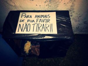 Uma boa dica é se você passar na rua e ver um cãozinho com frio e na chuva, existe uma maneira muito barata e fácil de ajudar. Basta pegar uma caixa de papelão e cobrí-la com um saco plástico. Isto o protegerá do frio e da chuva. É muito prático e não custa nada.