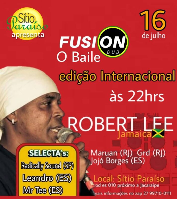 Pela primeira vez no Espírito Santo, um cantor de reggae direto da Jamaica fará show na Serra. Robert Lee vai tocar na festa Fusion Dub – O Baile – Edição Internacional, em Nova Almeida no sítio Paraíso.