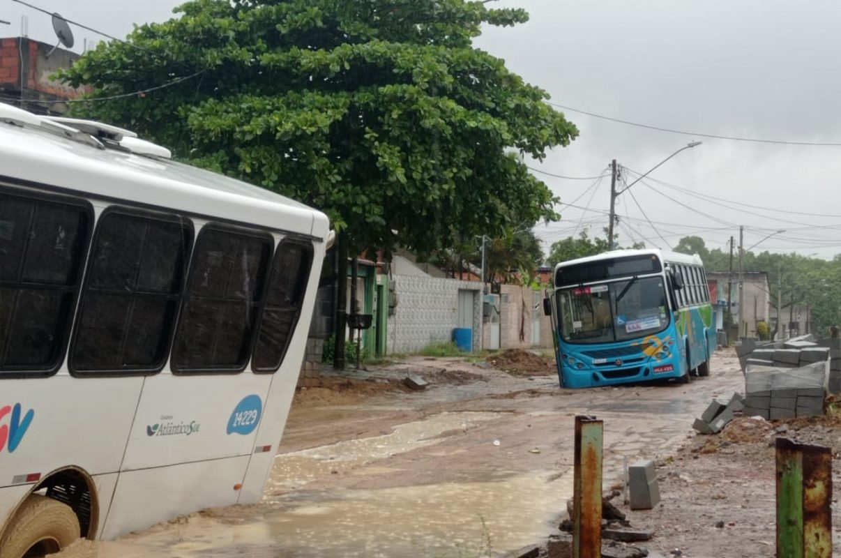 A reportagem apurou que os ônibus estavam vazios e, felizmente, ninguém ficou ferido. A situação ocorreu numa rua que ainda não foi pavimentada, mas está passando por obras. Segundo populares, a comunidade cobra melhorias há anos e começaram a ser atendidos apenas no final do ano passado.