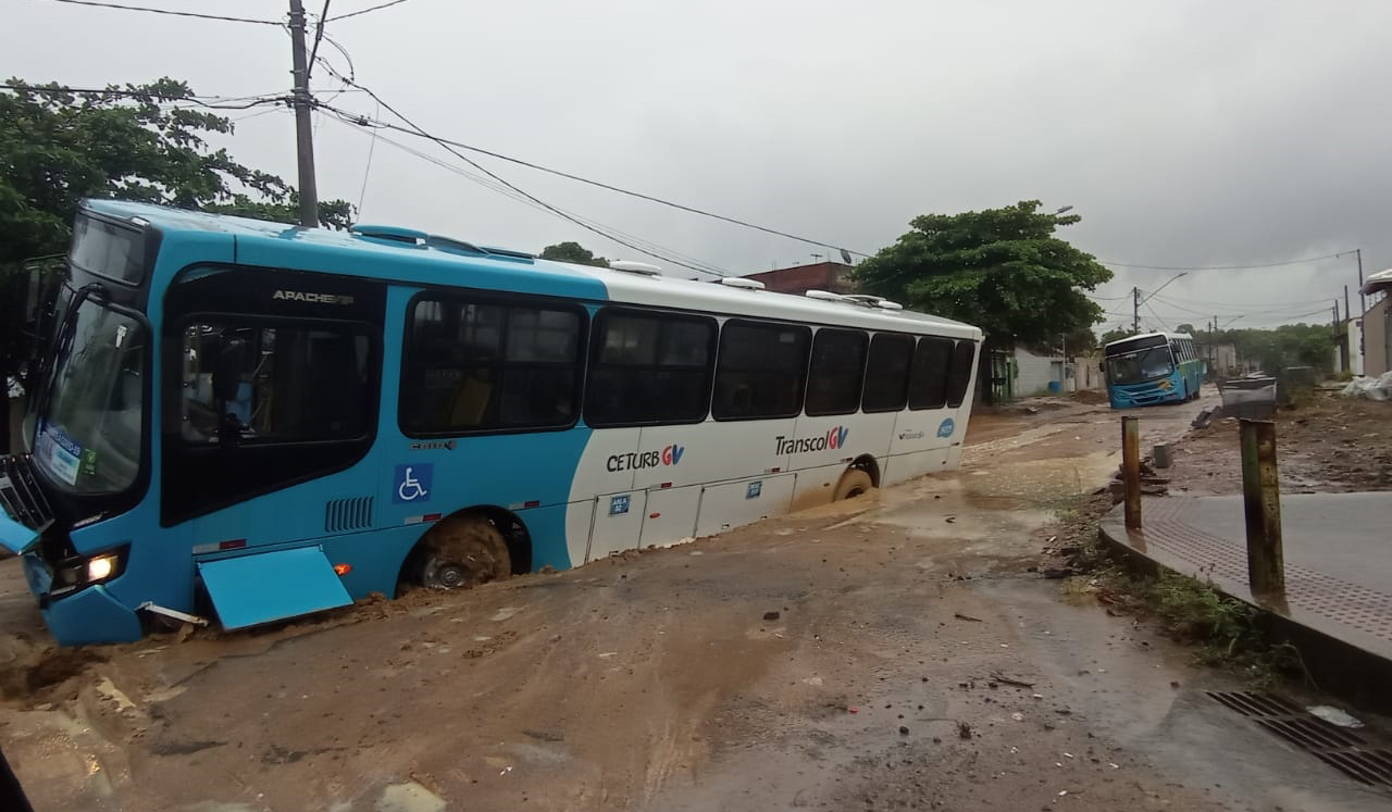 A semana começou complicada para passageiros do Transcol do bairro Praia de Carapebus, na Serra. Isso porque dois ônibus ficaram atolados em rua da comunidade que está tomada por lama devido às fortes chuvas que atingem a cidade desde o fim de semana. De acordo com moradores, o incidente ocorreu próximo ao ponto final do bairro.