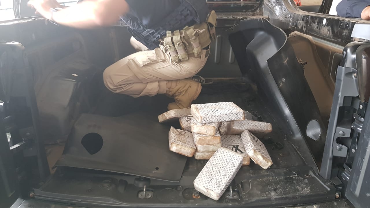 da bagagem, o que chamou a atenção dos agentes. A equipe então resolveu fazer a verificação com uso de cães. A droga estava escondida no veículo, que precisou ser desmontado para a retirada do ilícito. A origem da droga seria o Paraguai.