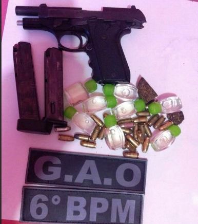 Em Vila Nova de Colares, policiais do Grupo de Apoio Operacional (GAO) apreenderam uma pistola calibre 380, dois carregadores e munições em uma residência. O suspeito conseguiu fugir durante a abordagem.Todos os materiais e os detidos foram encaminhados ao plantão policial da Serra para o registro das ocorrências.