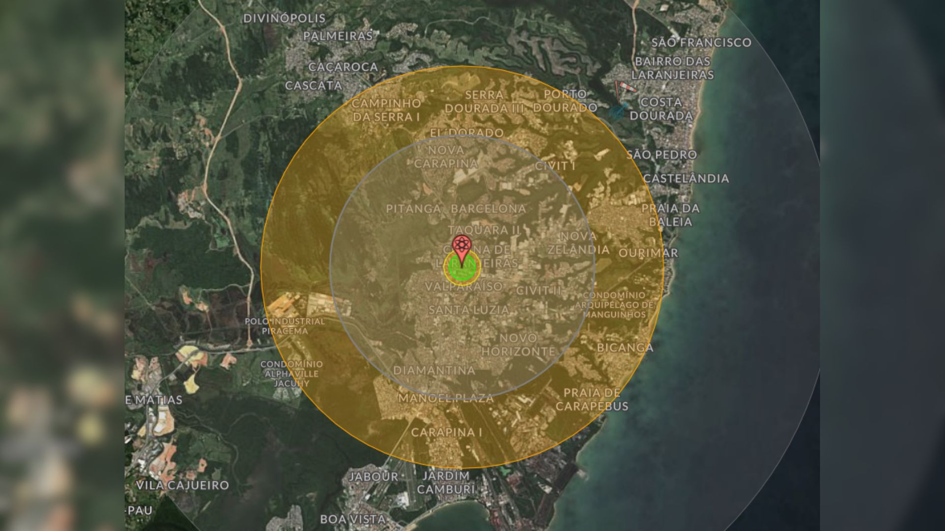 - Radiação letal (2 km): atingiria bairros como Parque das Gaivotas e parte de Jardim Limoeiro. A morte por radiação ocorreria em poucas horas.
