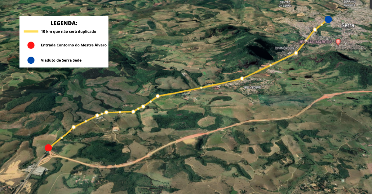 Entretanto, nem tudo são ‘rosas no jardim’, isso porque a empresa vai deixar cerca de 10 km sem duplicação no atual trecho da BR-101, que vai ser repassado para a Prefeitura da Serra cuidar. Este trecho compreende do km 257 logo após o viaduto na saída de Serra Sede em frente à Prefeitura – local que termina a pista duplicada – até o km 247,5, que será o entroncamento do futuro Contorno do Mestre Álvaro. Este intervalo de 10 km não será duplicado pela empresa e será transferido para a Prefeitura.