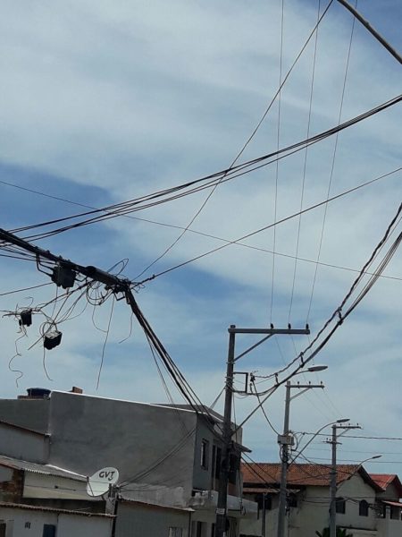 Imagina chegar em casa e tentar utilizar seu telefone fixo ou sua internet e não funcionar? Isso aconteceu com alguns moradores da rua Pau Brasil, em Feu Rosa. De acordo com populares, a EDP Espírito Santo começou a realizar uma obra de troca de postes e fiações na via e deixou fios de telefonia e internet cortados ou embaralhados nos postes.