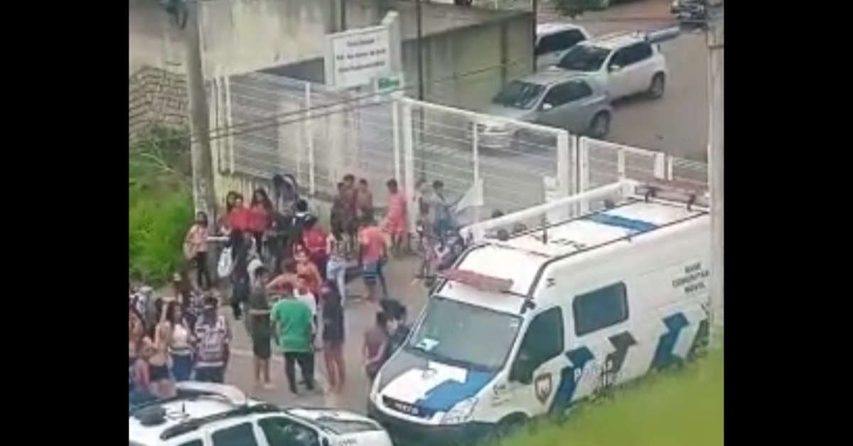 Por conta da confusão na porta da escola, três viaturas da Polícia Militar foram acionadas.