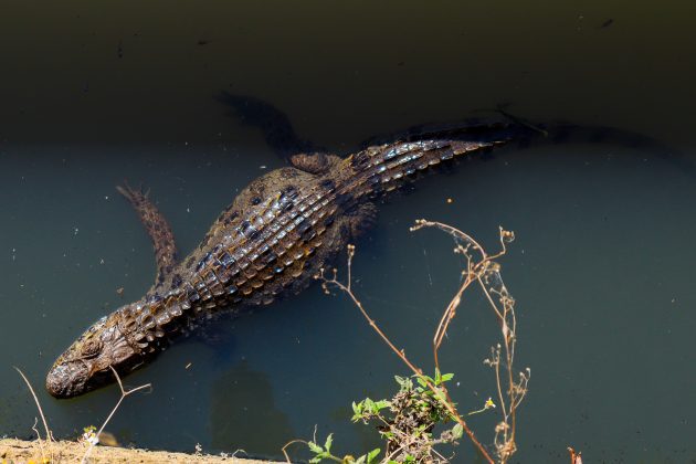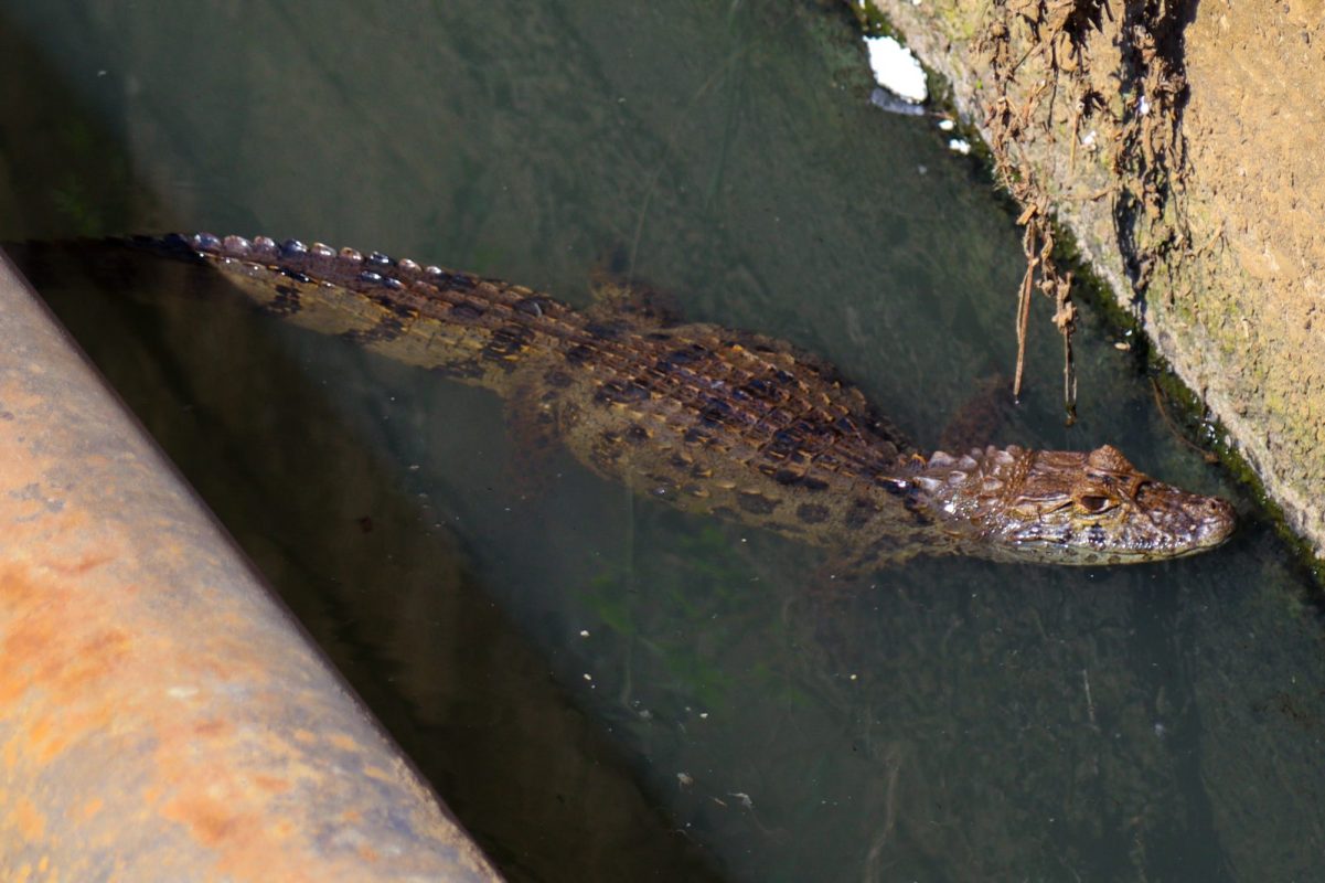 Um jacaré-de-papo-amarelo foi flagrado curtindo um sol num valão tomado por esgoto em Jardim Bela Vista, na Serra. Apesar de a cena ser curiosa e ter chamado atenção dos moradores, o caso também trouxe preocupação para biólogos, já que a espécie está classificada em “perigo de extinção”. Na prática, isso significa que esses animais podem, em pouco tempo, não mais existir no Brasil. O flagrante foi feito nesta quinta-feira (9), na rua 1.