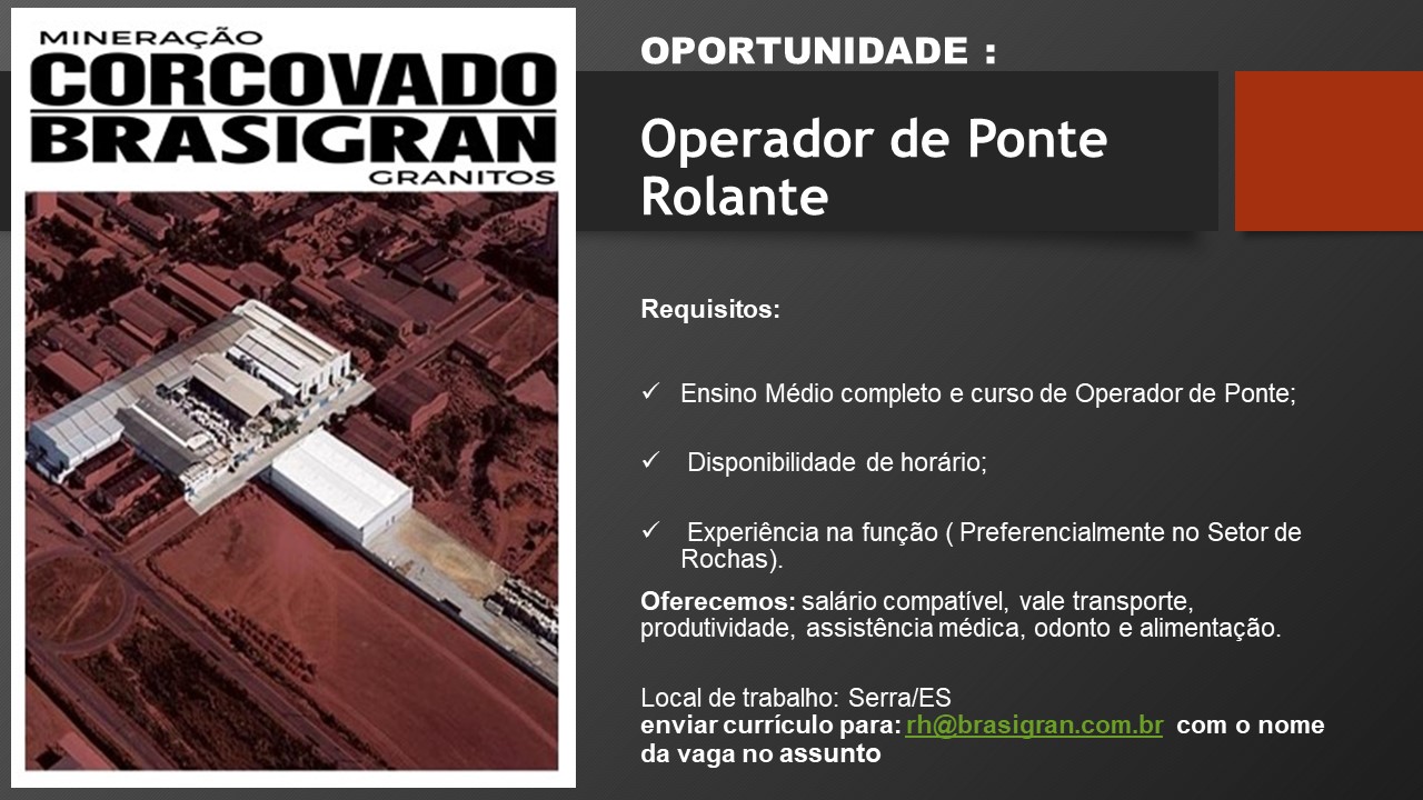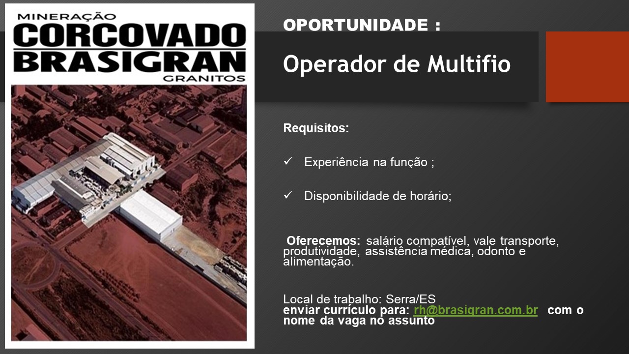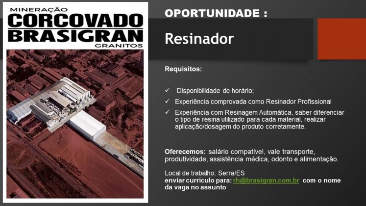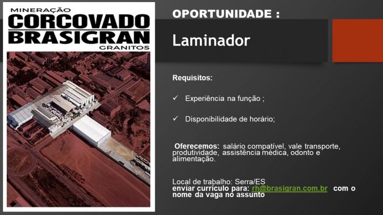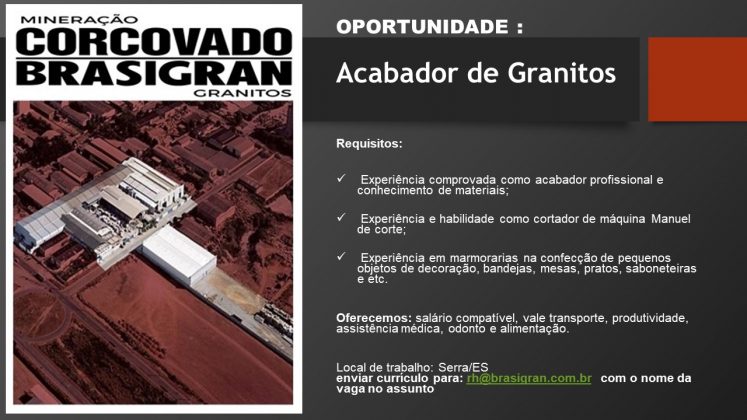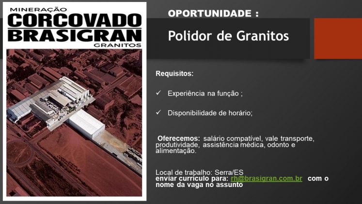 Referência no mercado de granitos, a Brasigran abriu novas vagas de emprego para moradores da Serra e de outras cidades da Grande Vitória. As chances são para trabalhar na fábrica da empresa, que fica situada no Civit II– região industrial do município.