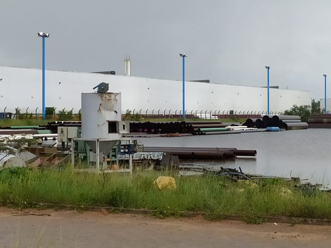 Ruas começavam a ser inundadas e partes mais baixas dos terrenos de algumas empresas também. Uma delas, a TSA, teve alguns tubos produzidos para empresas petrolíferas atingidos pela enchente.