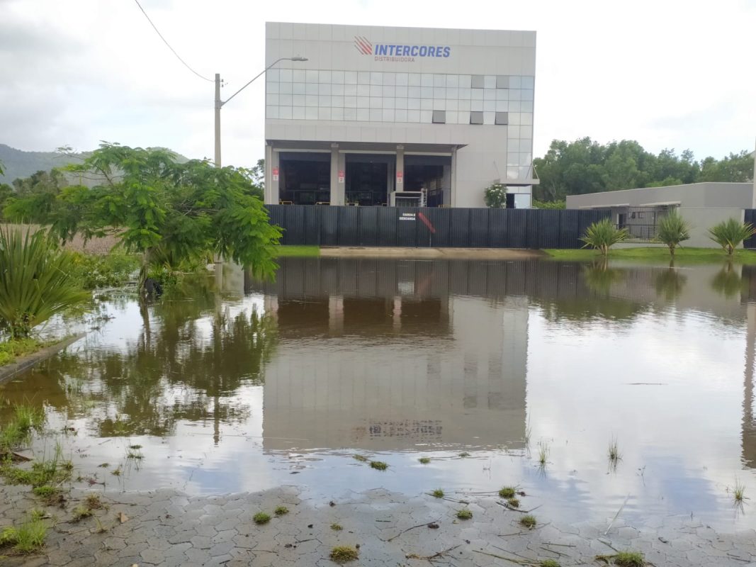 O Tempo Novo esteve nos dois polos na manhã desta segunda-feira (05). As partes mais baixas dos terrenos de algumas empresas já estavam inundados.