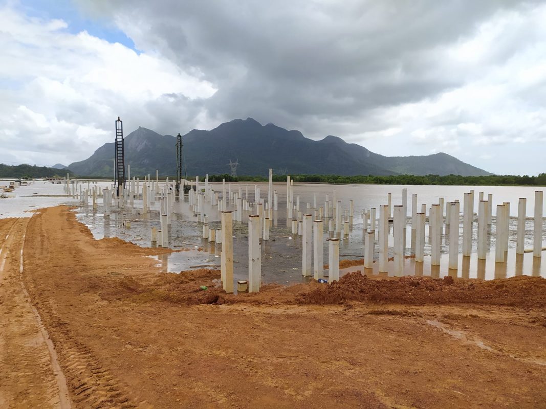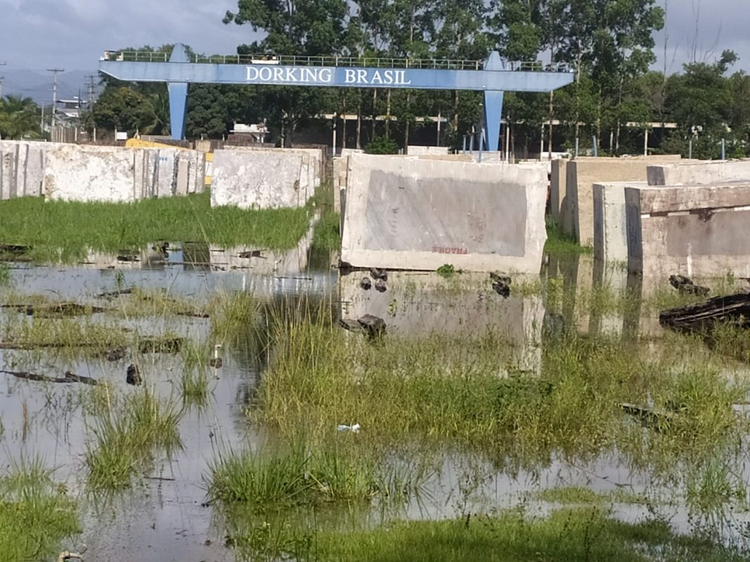 : Segundo um funcionário que trabalha no local, parte dos pátios a céu aberto que armazenam as pilhas dos materiais foi encharcado, impedido o manuseio dos produtos.