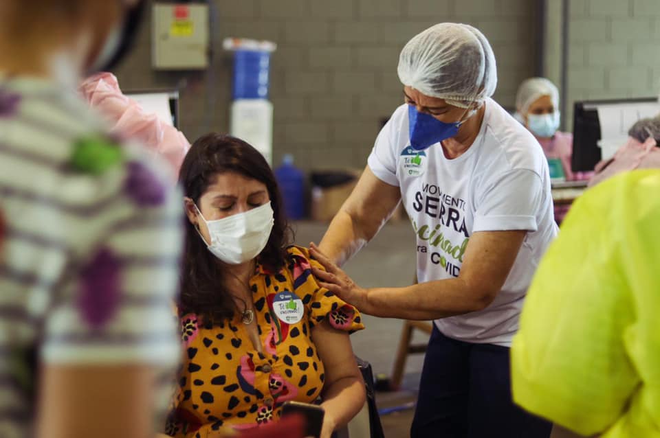 Na última quarta-feira (30), a Prefeitura da Serra vacinou 6,5 mil pessoas contra a Covid-19 no Pavilhão de Carapina. O mutirão começou às 10h da manhã e durou noite adentro. No entanto, um erro registrado no sistema de agendamento da Prefeitura da Serra ocorrido no último domingo (27) acabou levando mais pessoas para a ação, que gerou tumulto e aglomeração. Inicialmente estavam previstos a imunização de 5 mil pessoas.