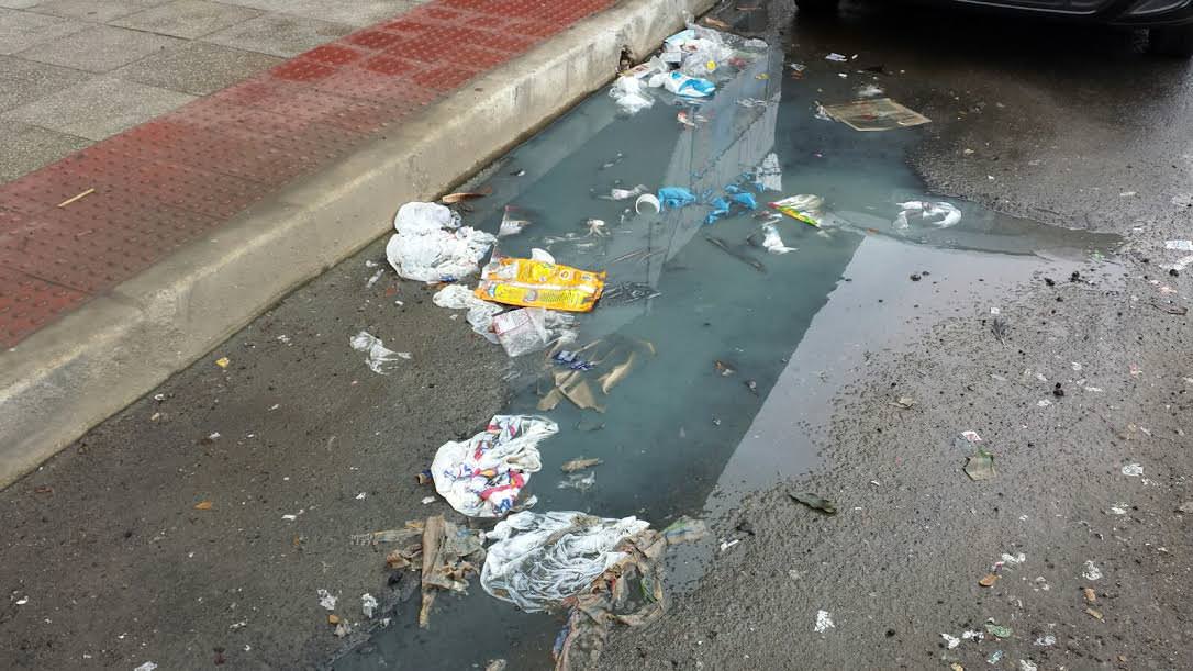 Mas de acordo com a concessionária Serra Ambiental, responsável pelo serviço de esgotamento sanitário no município, a água não é esgoto. Segundo a assessoria de imprensa da concessionária, uma equipe foi ao local agora há pouco, que fica em frente à loja Armazém do Doce, e constatou que poça d’água pode ter sido formada após a limpeza de algum imóvel que tenha passado por pintura recente, por isto a cor.