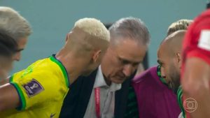 O atacante Richarlison era um dos jogadores mais desolados após a eliminação do Brasil na...