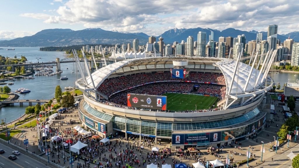 Inaugurado em 1983 e reformado em 2011, o BC Place é o estádio mais imponente do Canadá, com um extraordinário teto retrátil que o protege das condições climáticas do Pacífico. O estádio tem um histórico impecável em grandes eventos: sediou as cerimônias de abertura e encerramento dos Jogos Olímpicos de Inverno de 2010 e a final da Copa do Mundo Feminina de 2015. Em 2026, será uma das apenas duas arenas fora dos EUA a receber uma partida das oitavas de final (Round of 32).