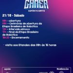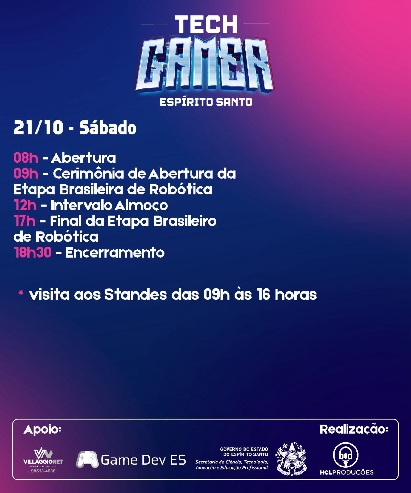 A programação da Tech Gamer inclui ainda a Etapa Espírito Santo do Torneio Brasil de Robótica, que vai reunir mentes inovadoras em um momento de competição, aprendizagem e diversão.