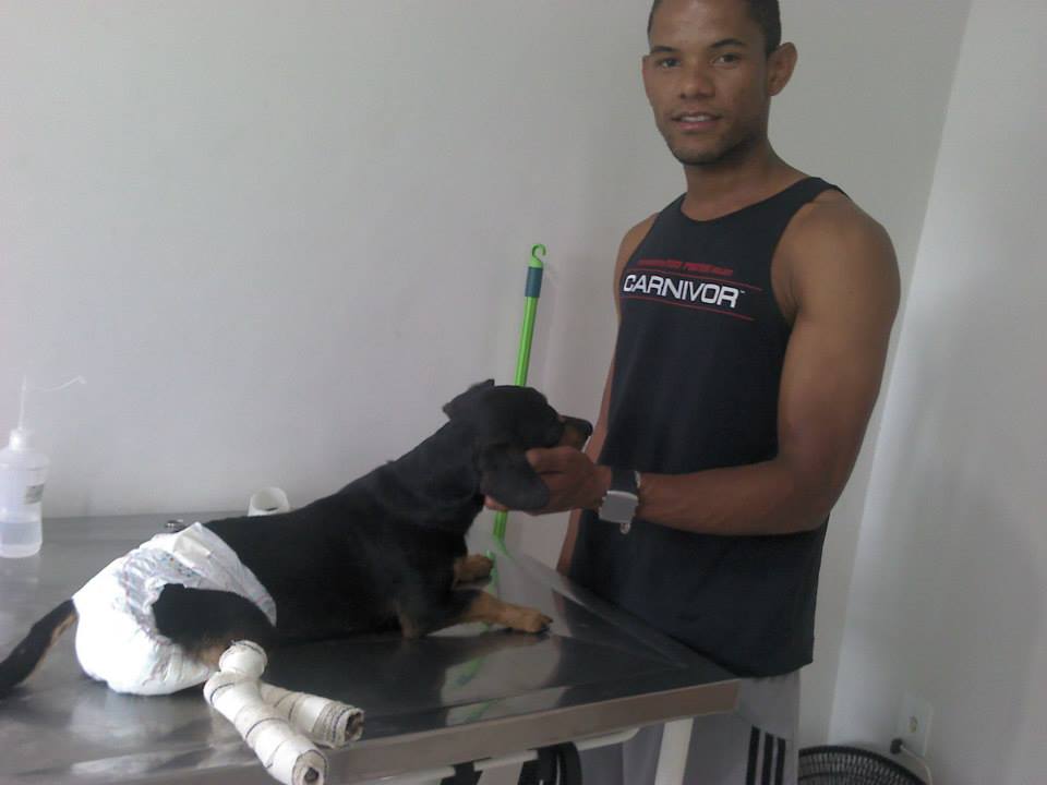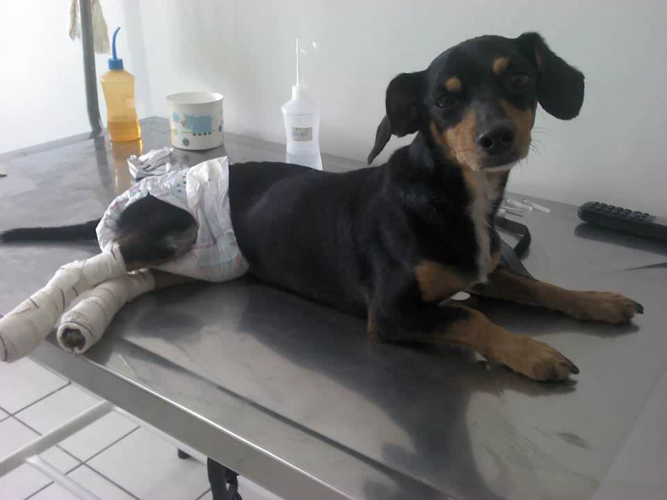 Este pequeno foi atropelado na semana passada, em Nova Almeida. Foi resgatado em frente a uma academia por funcionários. Ele machucou a coluna e as duas pernas traseiras, o que o deixou impossibilitado de andar normalmente. O rapaz que o resgatou, Washington Alves Silva, precisa de ajuda, pois o cachorro precisa realizar exames caros e de uma cadeirinha para se locomover. Quem puder ajudar ou tiver interesse em adotar o cãozinho, pode entrar em contato através do telefone 9 9820-9898.