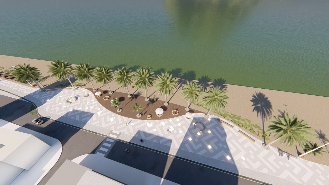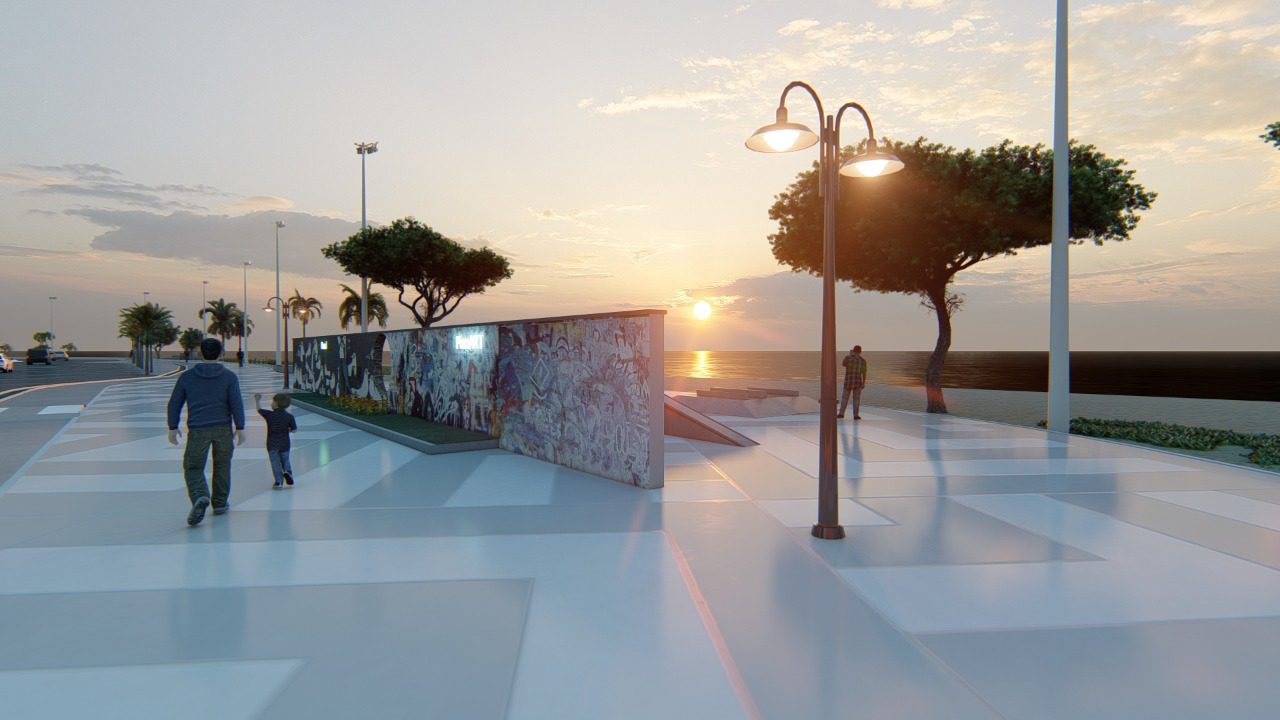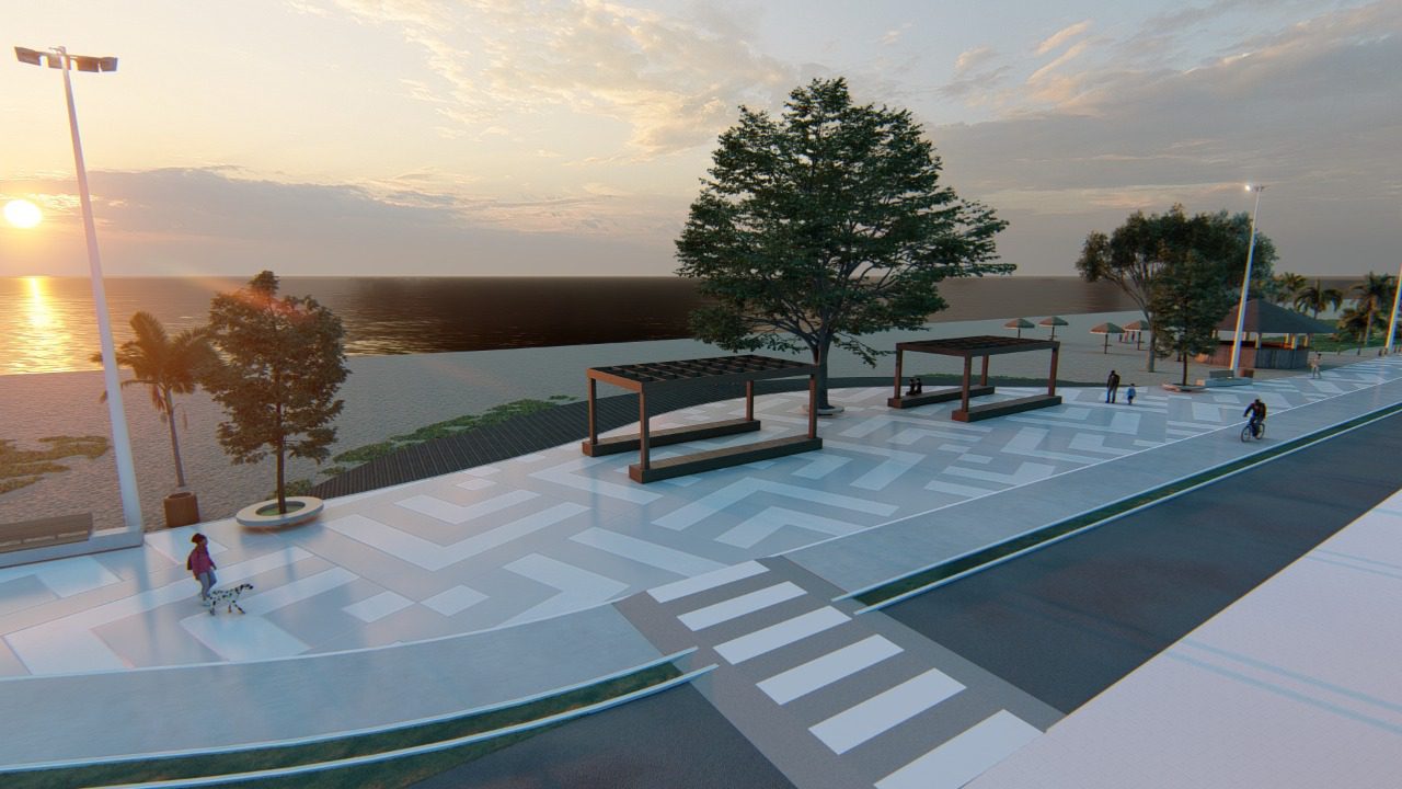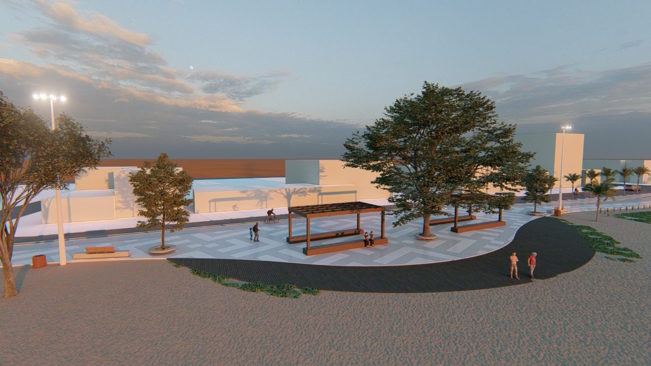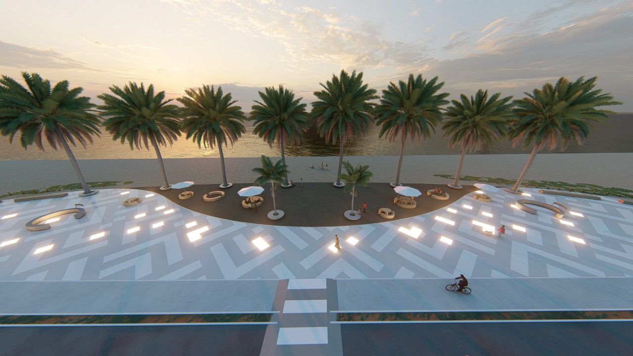 A orla ainda contará com uma nova ‘’praça, intitulada como ‘Encontro das Palmeiras’. “Um ponto chave é a conexão de duas “áreas” em uma única maior (no meio do trecho, frente a rua mato grosso), com um deck que permite aumentar a área de uso para instalação de mobiliários diversificados que se encaixam nos diferentes grupos que irão usar/frequentar. É muito importante criar um ponto de conexão pois ajuda a concretizar o objetivo das interferências que serão executadas”, detalha Halpher.