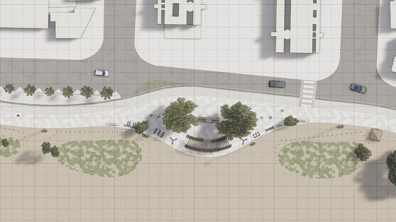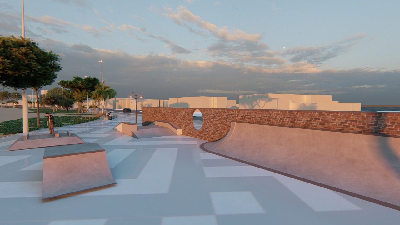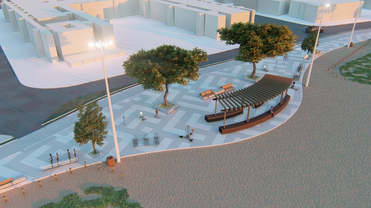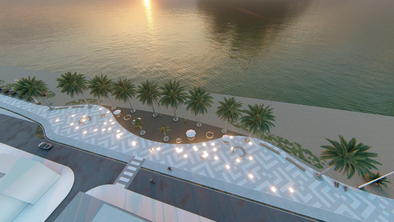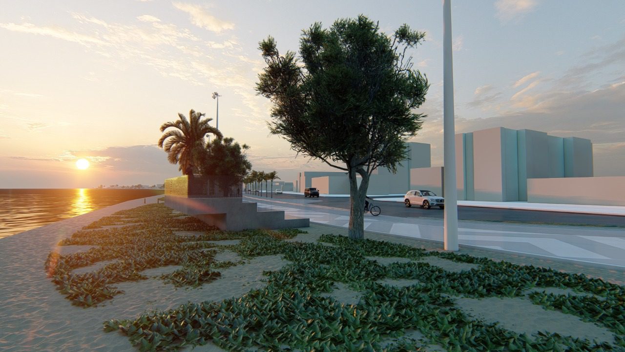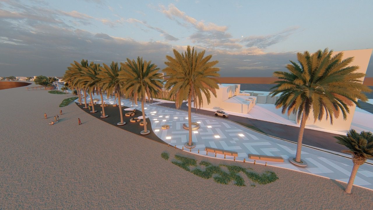 A orla ainda contará com uma nova ‘’praça, intitulada como ‘Encontro das Palmeiras’. “Um ponto chave é a conexão de duas “áreas” em uma única maior (no meio do trecho, frente a rua mato grosso), com um deck que permite aumentar a área de uso para instalação de mobiliários diversificados que se encaixam nos diferentes grupos que irão usar/frequentar. É muito importante criar um ponto de conexão pois ajuda a concretizar o objetivo das interferências que serão executadas”, detalha Halpher.