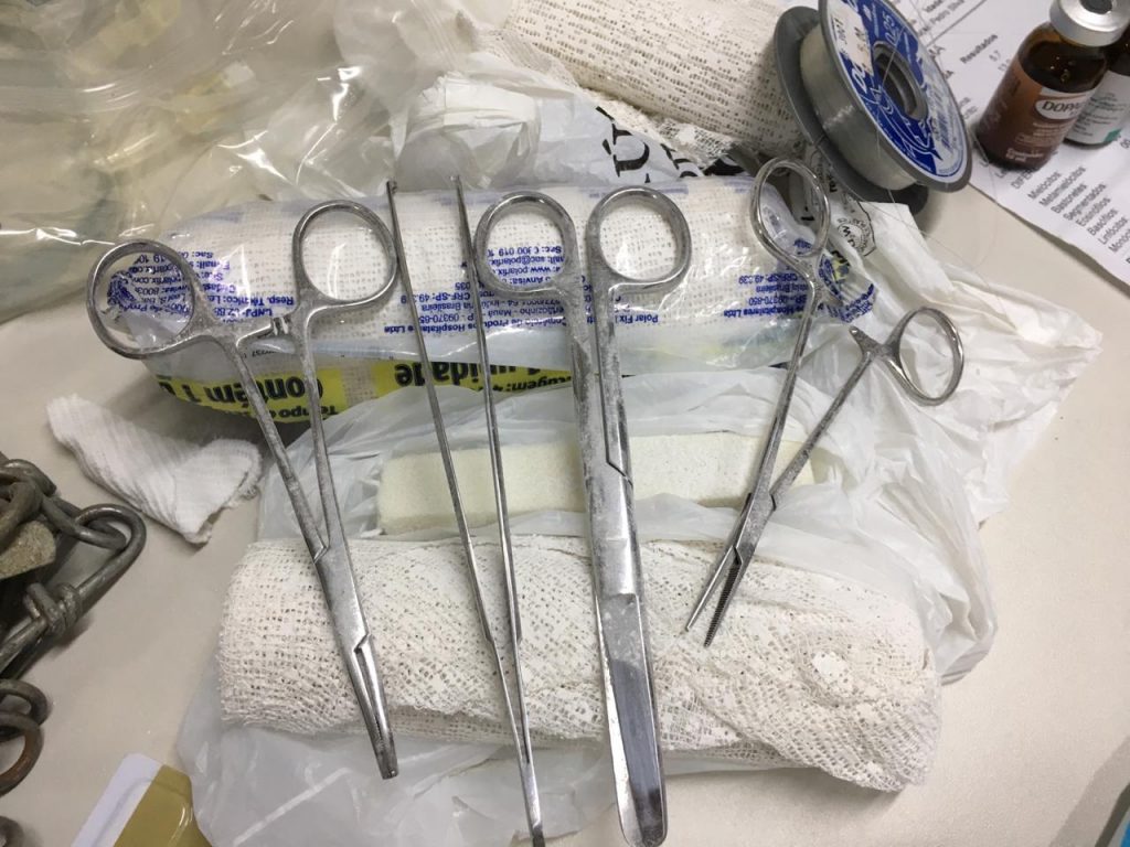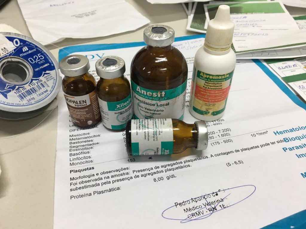 Um mandado de busca e apreensão foi cumprindo na residência do acusado e no local foram apreendidos anestésicos de uso controlado e restrito para médicos veterinários, instrumental cirúrgico, receitas e cartőes de vacina com carimbos e assinaturas do suspeito, se identificando como médico veterinário com registro do Conselho Regional de Medicina Veterinária (CRMV) do Rio Grande do Norte.