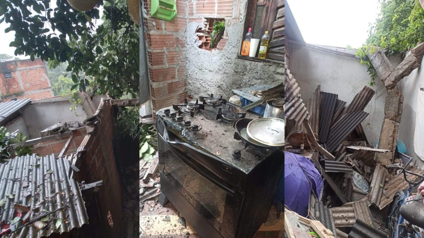 Informou ainda que outras duas casas foram atingidas. As três famílias estão desalojadas. Duas delas foram encaminhadas para aluguel social e uma foi para casa de parente.