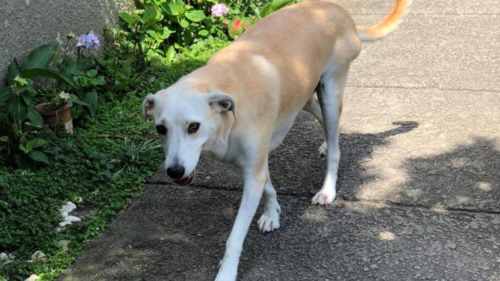 Dandan tem pelagem caramelo e uma característica marcante que pode ajudar na sua identificação: uma pequena protuberância (caroço/bola) no lado esquerdo do quadril. A família está oferecendo uma recompensa de R$ 500 para quem tiver informações sobre seu paradeiro.