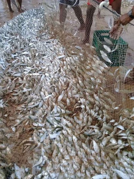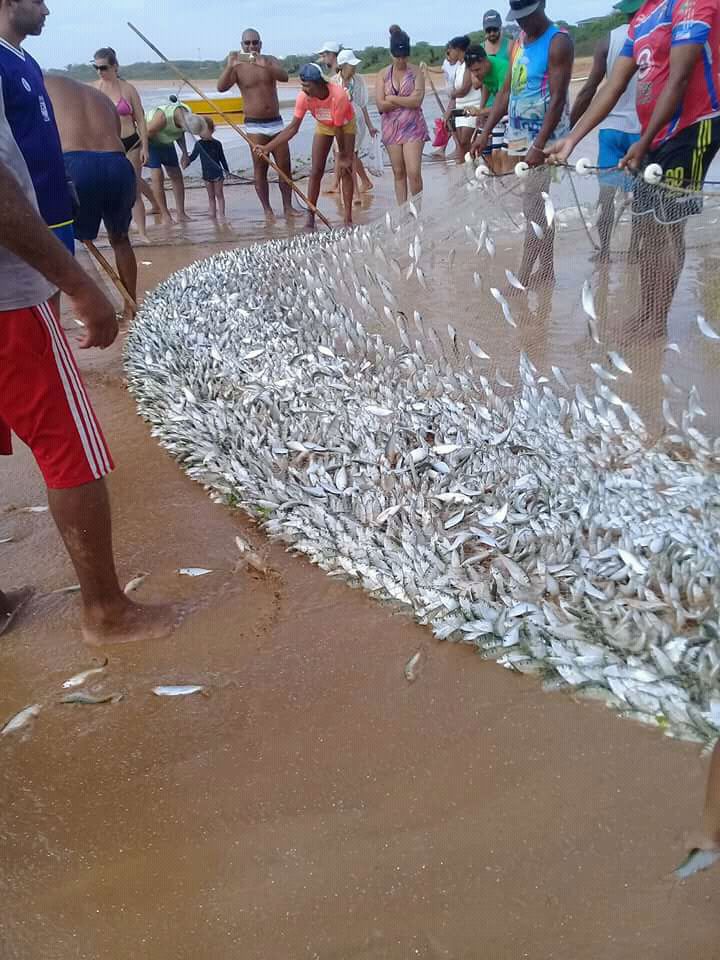 Uma verdadeira enxurrada de peixe está deixando moradores e turistas de Bicanga, na Serra, em polvorosa. É que desde o início desta semana pescadores estão fazendo a festa com a quantidade de peixes, principalmente sardinha e pescadinha, que tem vindo com as redes colocadas no mar do balneário.