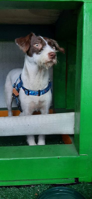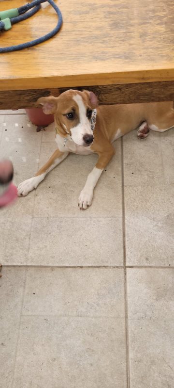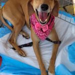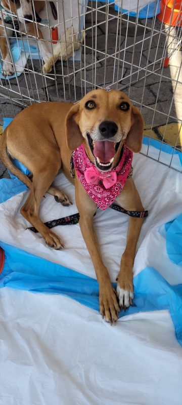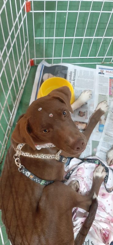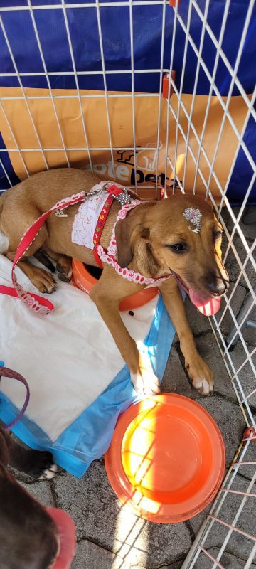 Outra cadelinha que está na feira é a Sol. Resgatada em outubro de 2020, muito humilhada, com a pele toda infeccionada, esfomeada e carente. “Tem aproximadamente 3 anos, já castrada e vacinada. Ainda internada, após alguns dias já estava alegrinha e super brincalhona, é uma menina feliz, cheia de energia boa, adora correr e aprontar no abrigo, mas é uma Lady para passear de carro e se comporta nos eventos de adoção. Quem adotar terá uma parceirona de caminhadas, disposição não falta, muita energia pra gastar! Torcemos para que a Sol encontre logo uma família tão maravilhosa quanto ela”.