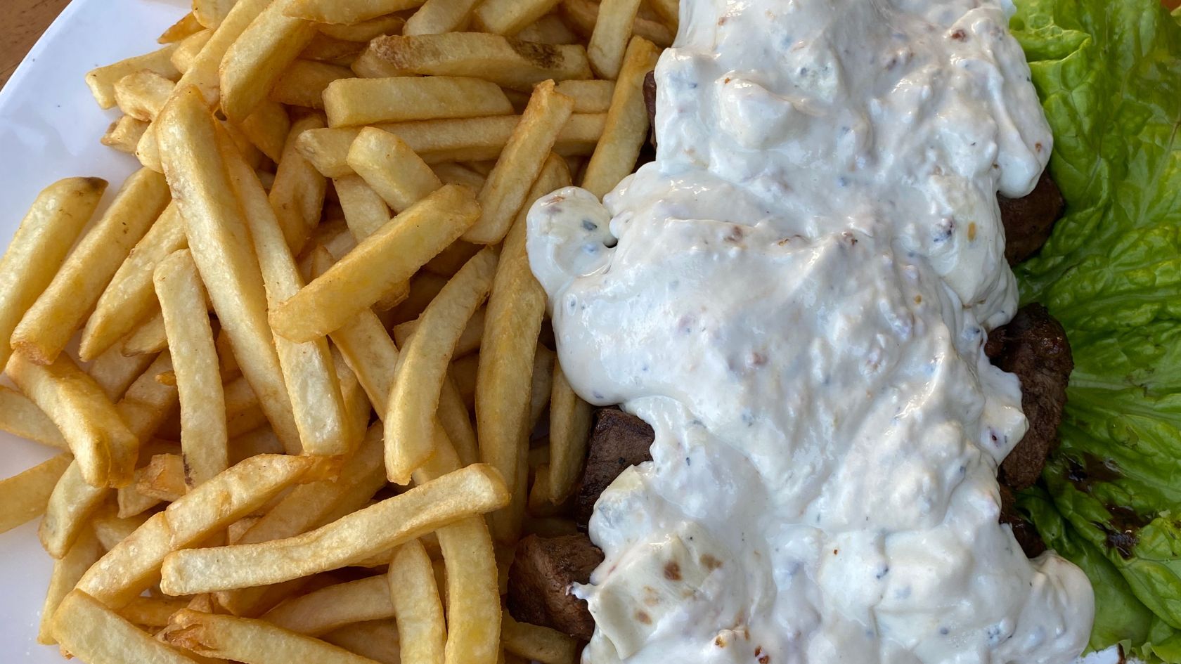 - Cabana do Luiz – Filé Mignon ao molho Gorgonzola: Deliciosos cubos de filé mignon ao alho e óleo coberto com molho de gorgonzola acompanhado de batatas canoa. R$89,90 (serve 2 pessoas)